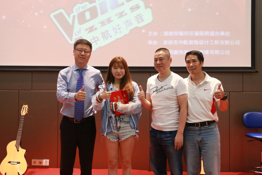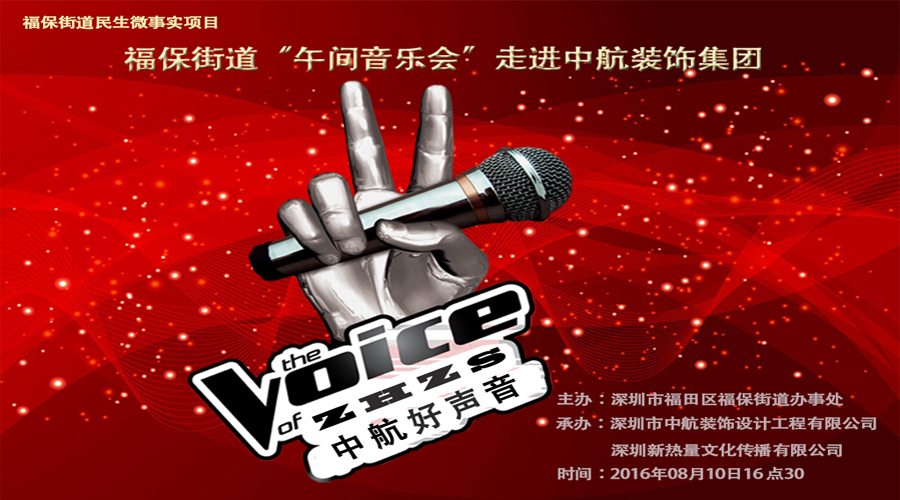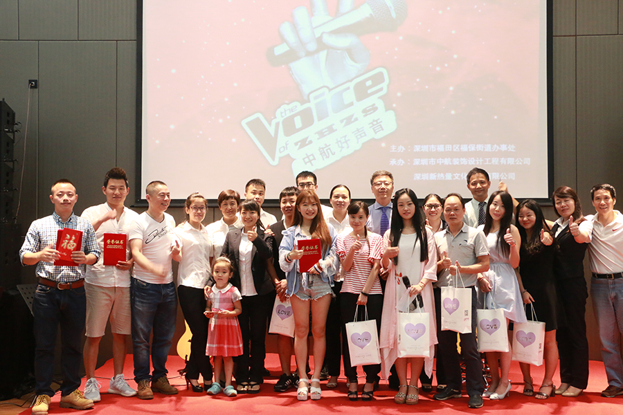 ? ??2016年8月10日,由福田區(qū)福保街道辦主辦、中航裝飾集團及深圳新熱量文化傳播有限公司承辦的“午間音樂會”暨“中航好聲音”總決賽在福田保稅區(qū)中航裝飾集團總部的多功能廳精彩上演,經(jīng)過近兩個小時的激烈角逐,這一聽覺盛宴給中航裝飾的全體員工在炎炎夏日帶來了一份酣暢淋漓的享受。