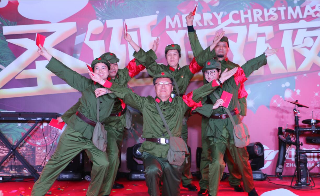 ? ? 此次圣誕嘉年華活動共分兩個部分,第一部分是由員工自導(dǎo)自演、精彩紛呈的圣誕晚會,歌曲、小品、相聲等節(jié)目輪番上演,將現(xiàn)場氣氛帶進一個又一個高潮。其中由中航裝飾老、中、青幾代人共同演繹的節(jié)目《年代秀》給觀眾留下了深刻的印象,大家在享受歡樂美好時光的同時沒有忘記,是中航裝飾幾代人前赴后繼、努力工作才有中航裝飾今天的成就。精彩的演出結(jié)束后,豐盛的自助晚宴拉開序幕,大家歡聚一堂,品嘗精心準(zhǔn)備的包括中餐、燒烤、特色菜肴、西式甜點等豐富多樣的美味佳肴,大家歡聲笑語,舉杯暢飲,更有即興點唱環(huán)節(jié),讓所有人都融入到了這個圣誕歡快的氛圍中。