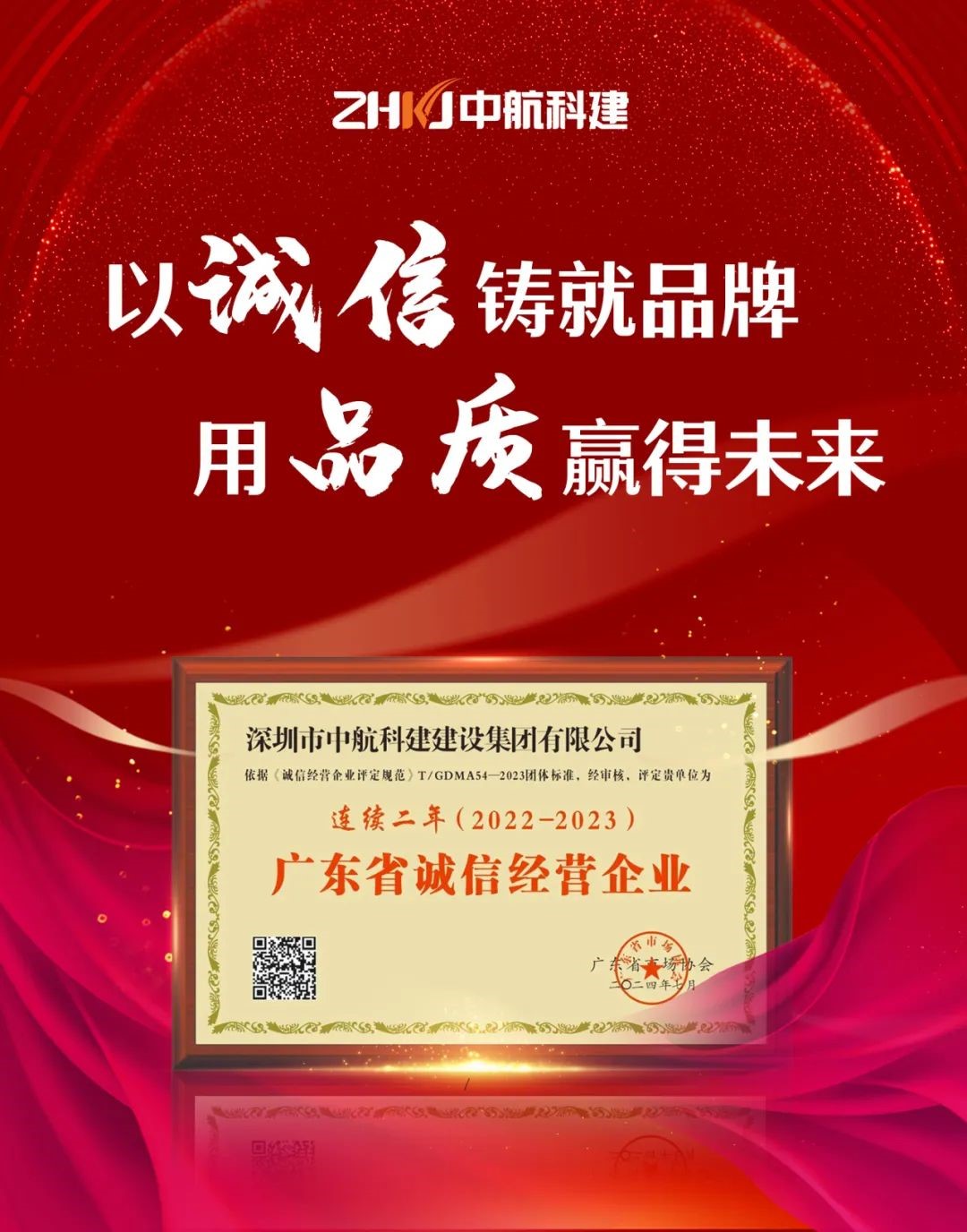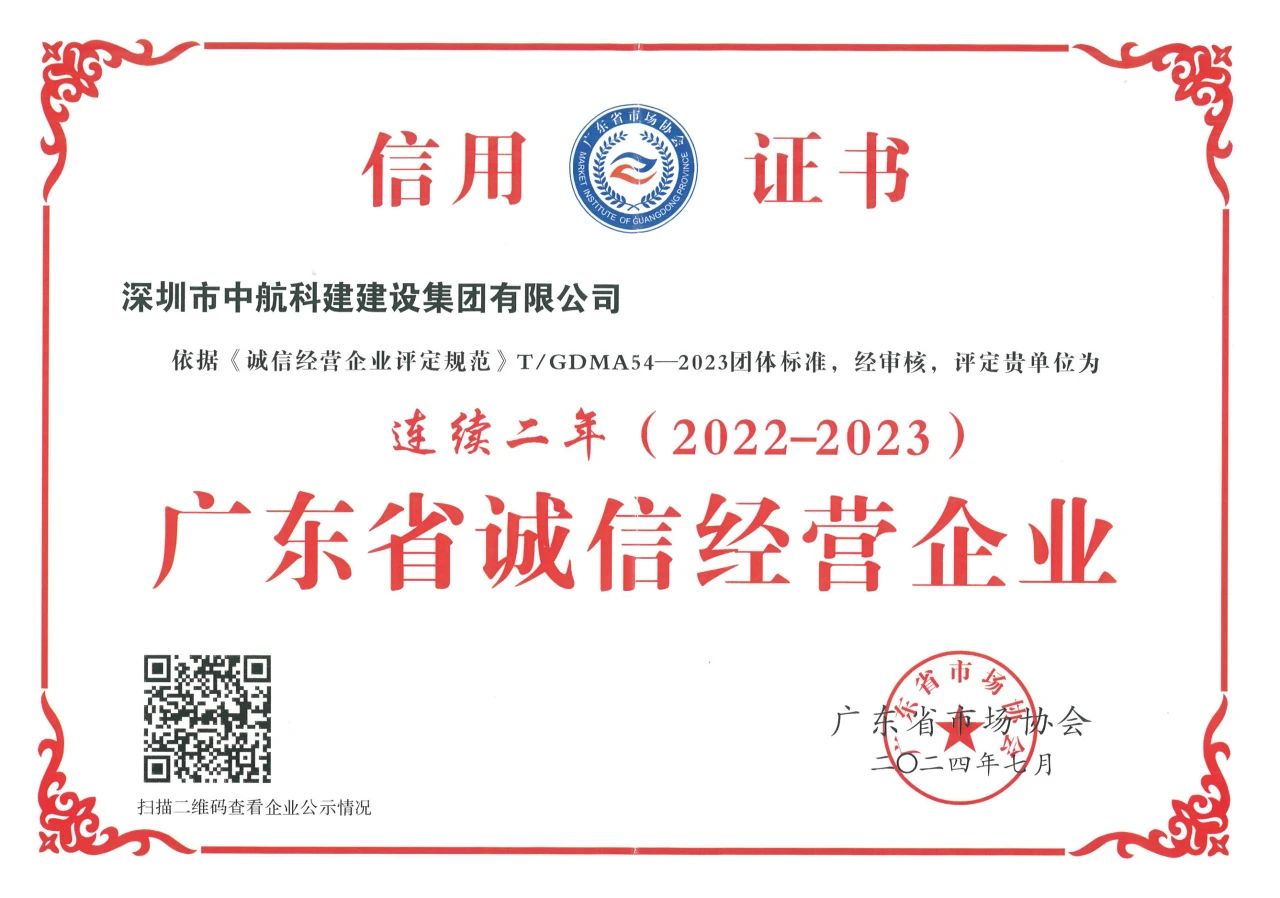 以誠信鑄就品牌 用品質(zhì)贏得未來 ── 中航科建榮獲2023年度廣東省誠信經(jīng)營企業(yè)