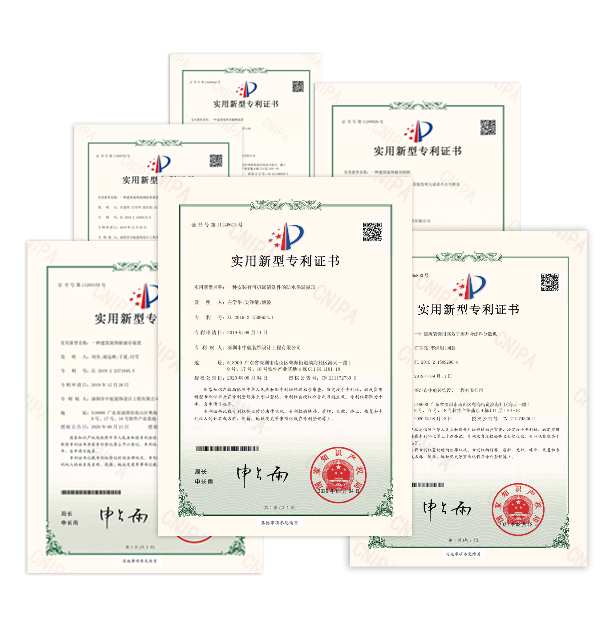 中航裝飾喜獲多項實用新型專利證書